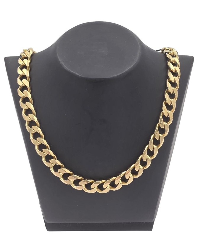 Make a statement with this bold 9ct yellow gold wide curb link chain. Crafted from solid gold, its substantial weight and timeless design make it a standout accessory and a smart investment piece. Perfect for those who appreciate quality and confidence in their style.