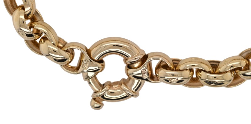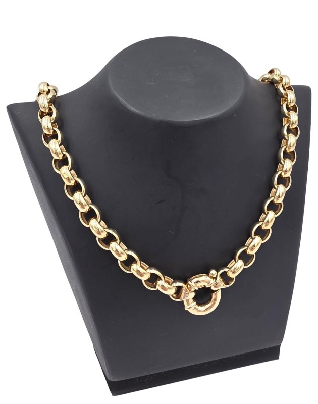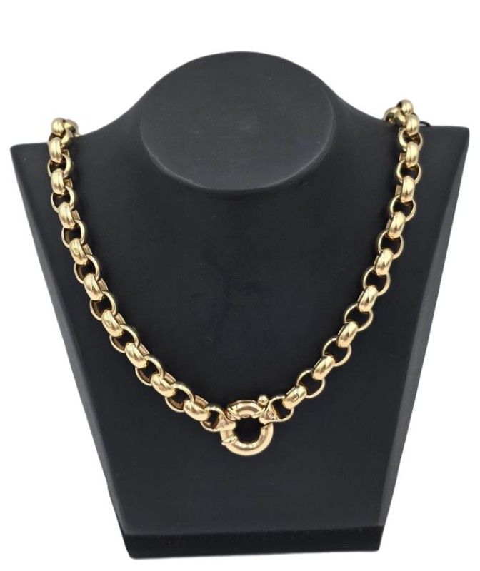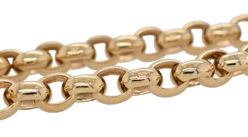 Crafted in 9ct solid yellow gold, this necklace showcases a rich, lustrous colour and timeless appeal. Measuring 52cm in length with a bold 0.8cm width, it features solid gold links, each individually stamped 9ct. With an impressive total weight of 58.89 grams, this piece offers both substance and sophistication - perfect for those seeking a statement piece in their jewellery collection.