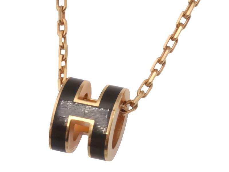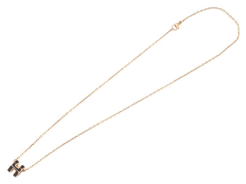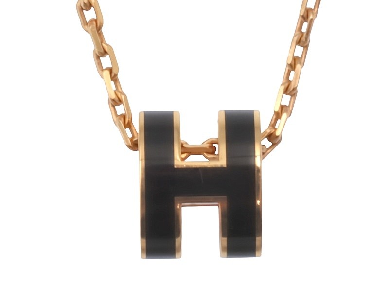This rose gold plated Hermès Mini Pop H Pendant Noir is a delicate and iconic piece. Crafted in metal with a lacquered finish, the compact 0.9 cm x 0.7 cm pendant features the brand's signature H design. The 40 cm chain allows for versatile styling, with the pendant weighing a lightweight 3.09 grams. This ladies' necklace is a refined accessory, handmade in France. Also including the original bag, box & packaging. All sizes and measurements are approximate.