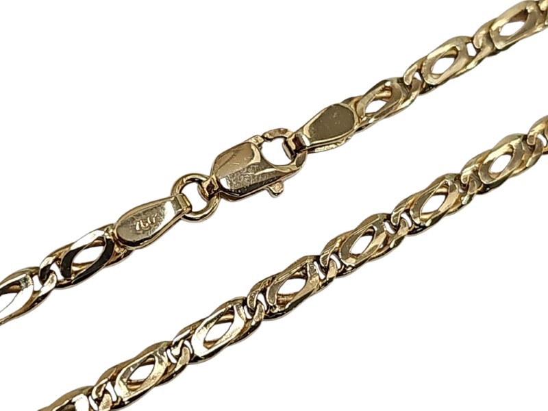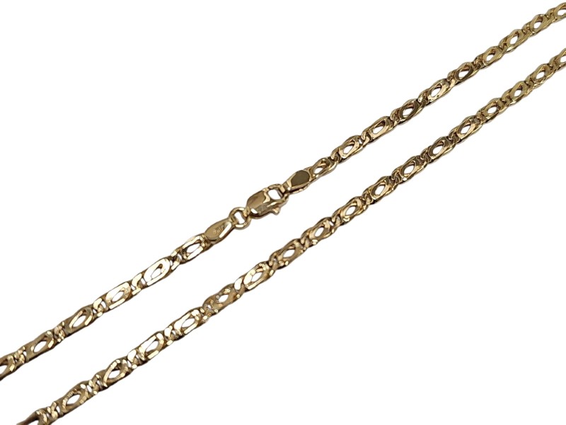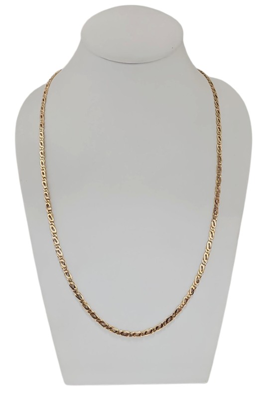 Crafted from exquisite 18 Karat yellow gold, this men's necklace is a timeless accessory. The hallmark of .750 ensures exceptional quality and purity. Weighing a substantial 16.85 grams, this necklace is a statement piece that will elevate any look. The classic necklace design provides a versatile and sophisticated finish. All sizes and measurements are approximate.
