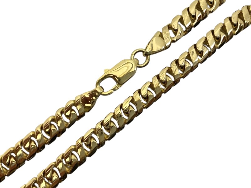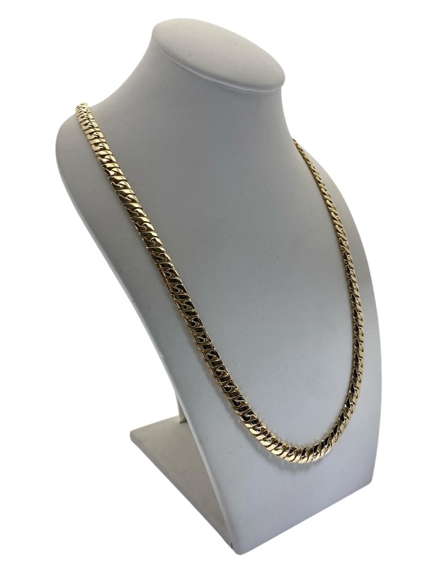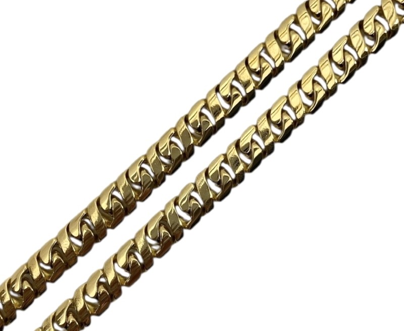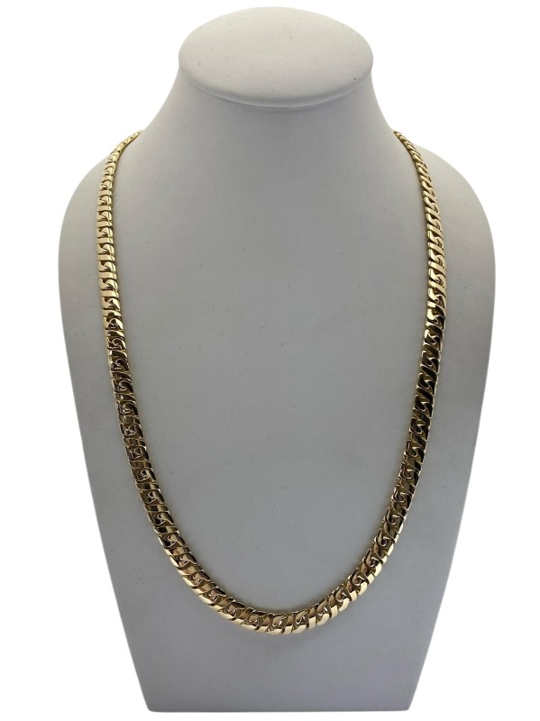 This striking 18 Karat yellow gold necklace is a timeless accessory for the modern man. Crafted from premium yellow gold, it measures 56.5 cm in length and weighs a substantial 72.62 grams, ensuring a substantial and durable feel. The necklace features a classic design that will seamlessly complement any casual or formal attire. All sizes and measurements are approximate.