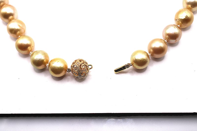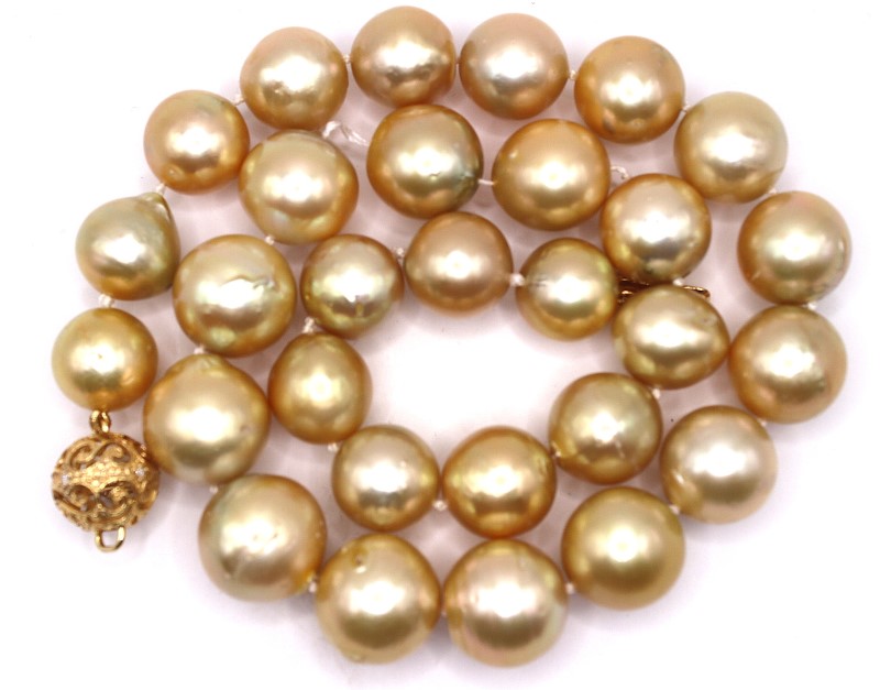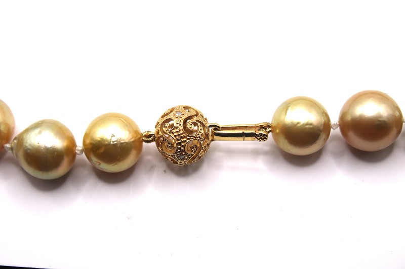 Make / Model: Single Strand 29 South Sea Pearls Gold Ball Clasp With Round Brilliants G-H I2