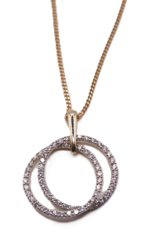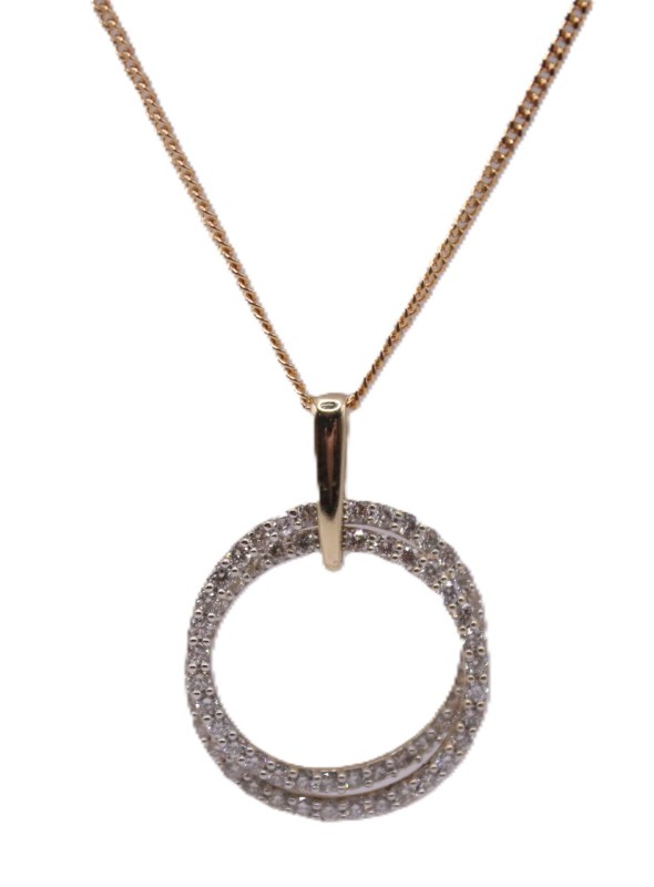 Make / Model: Curb Links Necklace With Double Circular Drop Moving Design Pendant Natural Round Brilliant Diamonds H-I Si1- I2