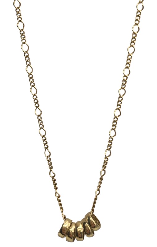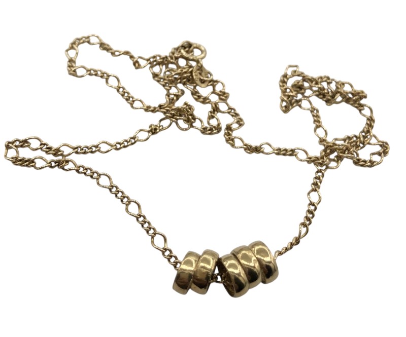 9ct Yellow Gold Necklace with 5 Ring Charms,