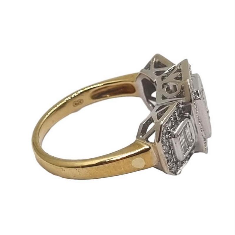This timeless 9ct yellow gold ring features a sparkling cluster of 57 diamonds, weighing a total of approximately 4.35g. The smooth band is hallmarked at .375, indicating its 9 karat purity. This stylish ladies' diamond ring with a size L½ band is a versatile accessory that can be worn for any occasion.
