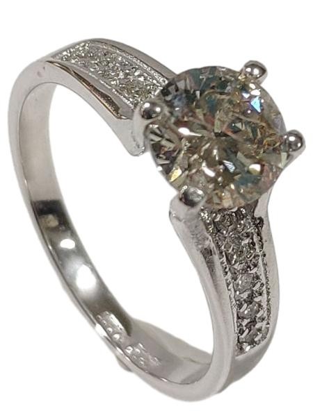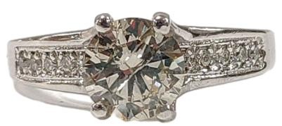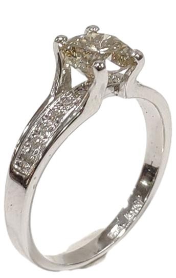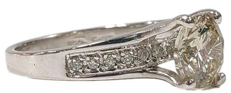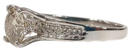 This glistening White Gold Ring Features One Round Brilliant Cut Diamond (Colour: C2 Treated Fracture Filled) & Twelve Round Brilliant Cut Diamonds TDW 0.12cts (Colour: G-I - Clarity: P2-P3)
