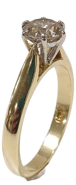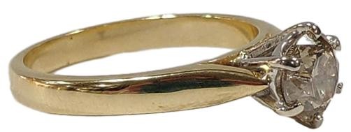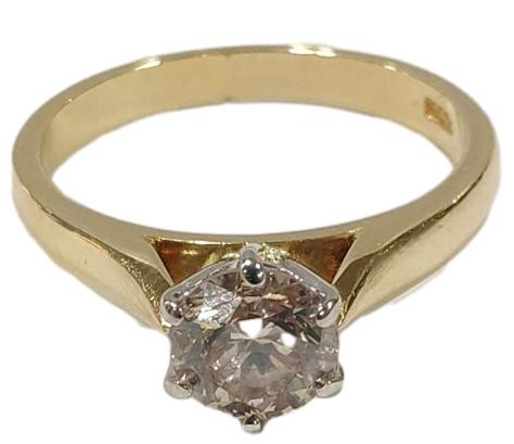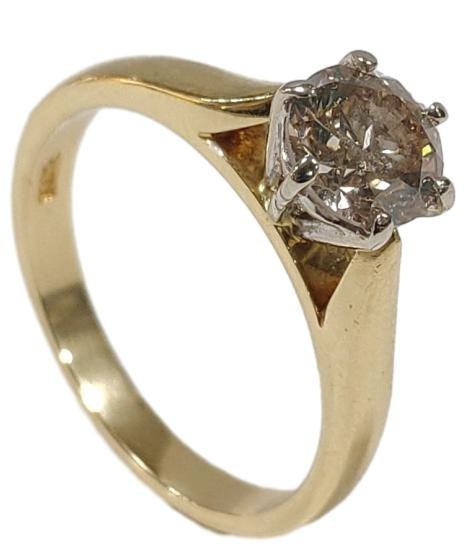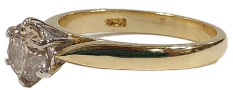 This glistening Yellow Gold Ring Features One Round Brilliant Diamond TDW 1.00cts (Colour: Cm (Champagne - Clarity: P1)