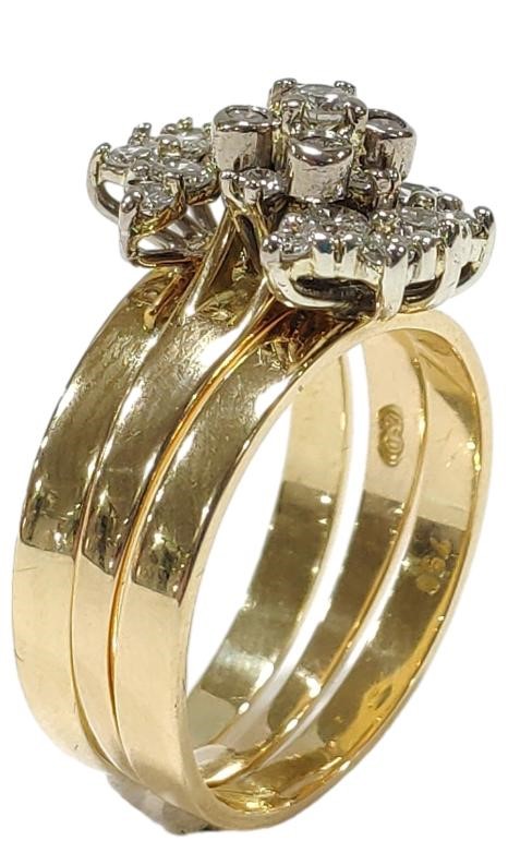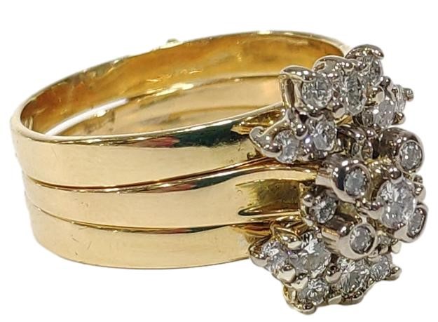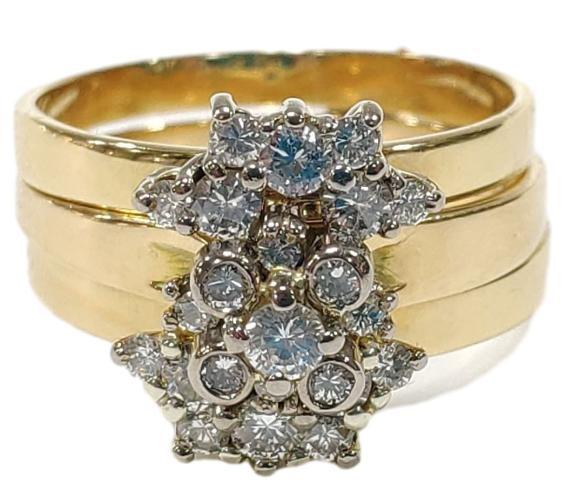 This glistening 3pce Yellow Gold Ring Set Features Twenty Three Round Brilliant Cut Diamond TDW 0.95cts (Colour: G,H,I - Clarity: SI-P1)