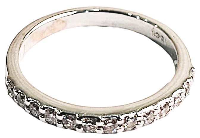 This elegant 18ct white gold ring features a channel-set row of 13 clear stones. Crafted with a smooth, straight-lined design, this classic eternity-style piece weighs a substantial 2.73g. Suitable for everyday wear, this timeless ring is a versatile accessory for the modern lady.