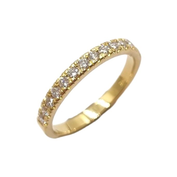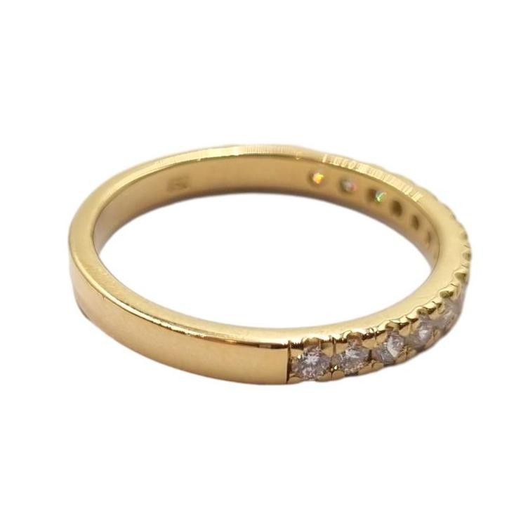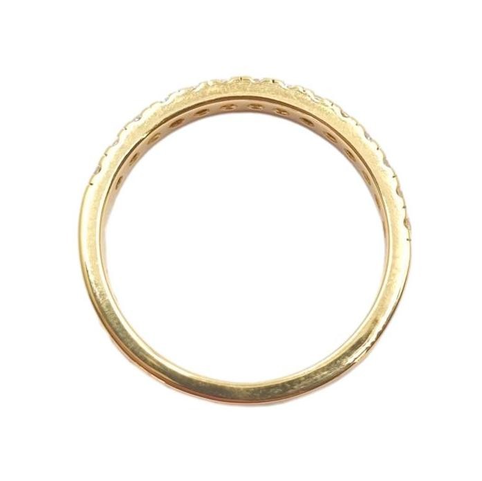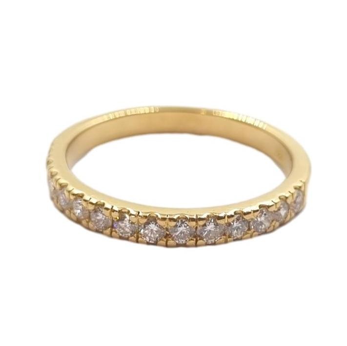 This stunning 18ct yellow gold ring features 0.42ct total diamond weight of round brilliant cut diamonds of G-H colour and VS/SI1 clarity. The elegant design is enhanced by 14 diamonds, creating a beautiful sparkle. Weighing 2.95g with a hallmark of .750, this timeless ring in size N is a nice accessory for any occasion. All sizes and measurements are approximate.