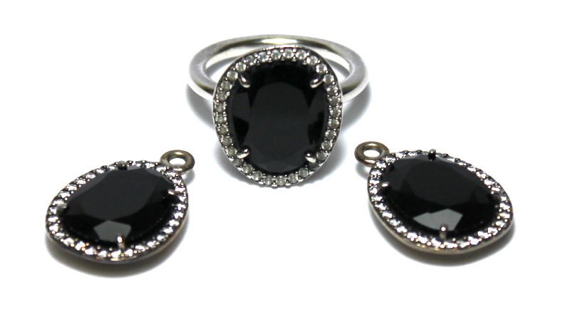 This beautiful 925 silver Pandora ring features a captivating design with a black stone surrounded by colourless stones. The ring has a size N and weighs 12.47 grams, making it a stylish and substantial piece. Crafted with expert attention to detail, this ring with stones is a versatile accessory that can be dressed up or down for any occasion. Comes with two matching pendants.