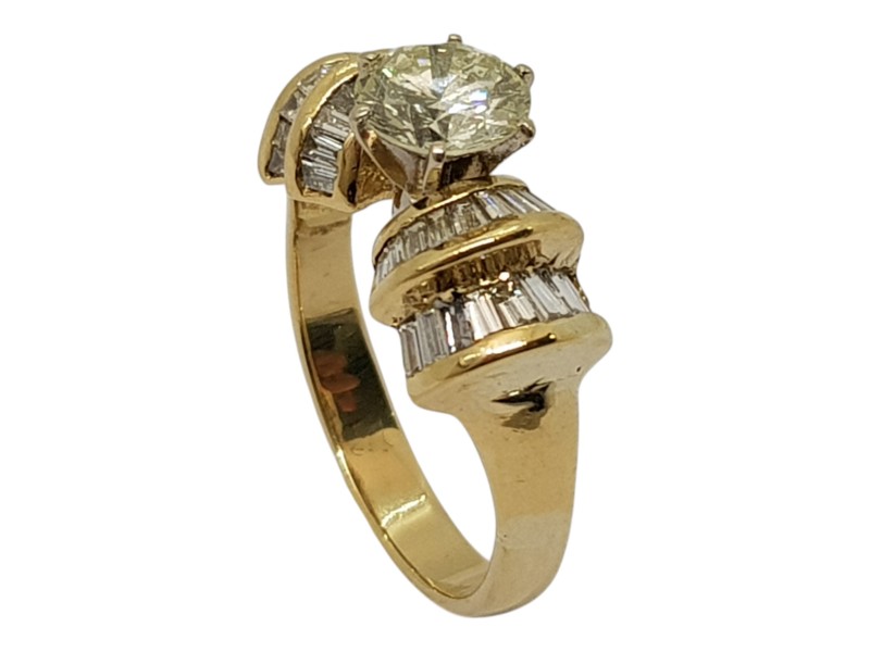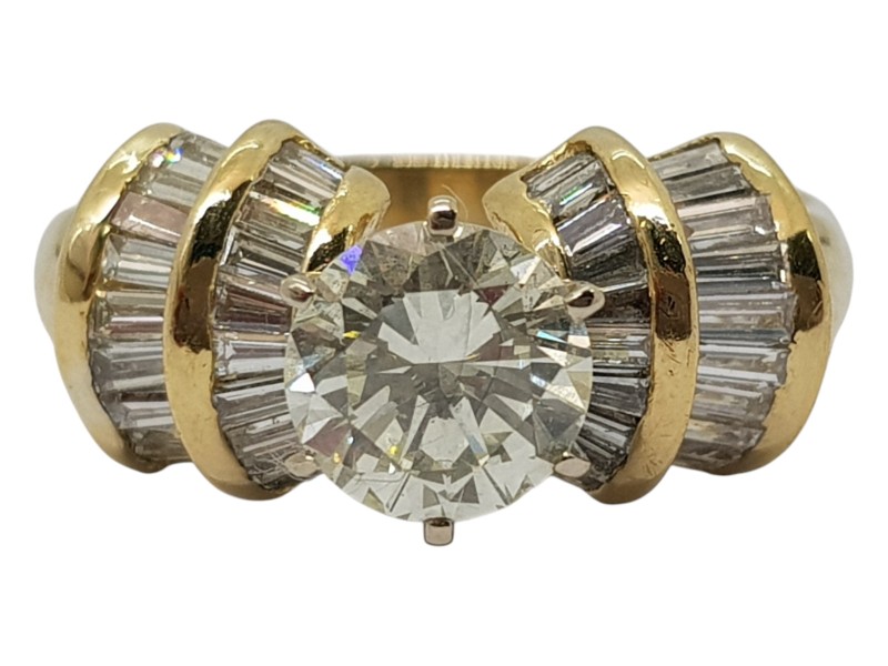 This stunning 18ct yellow and white gold diamond ring features a captivating combination of diamonds totaling 2ct. The elegant design showcases the brilliance of the precious stones, creating a sophisticated and timeless piece.