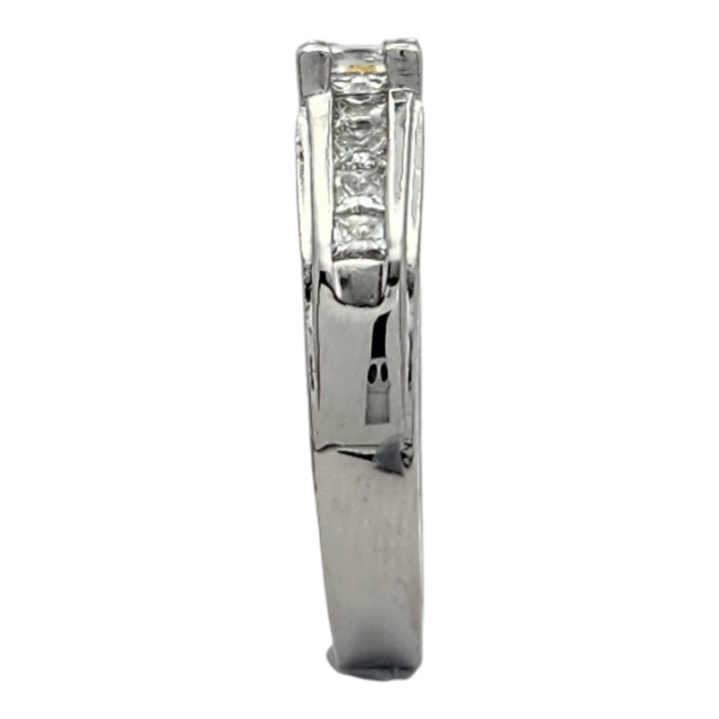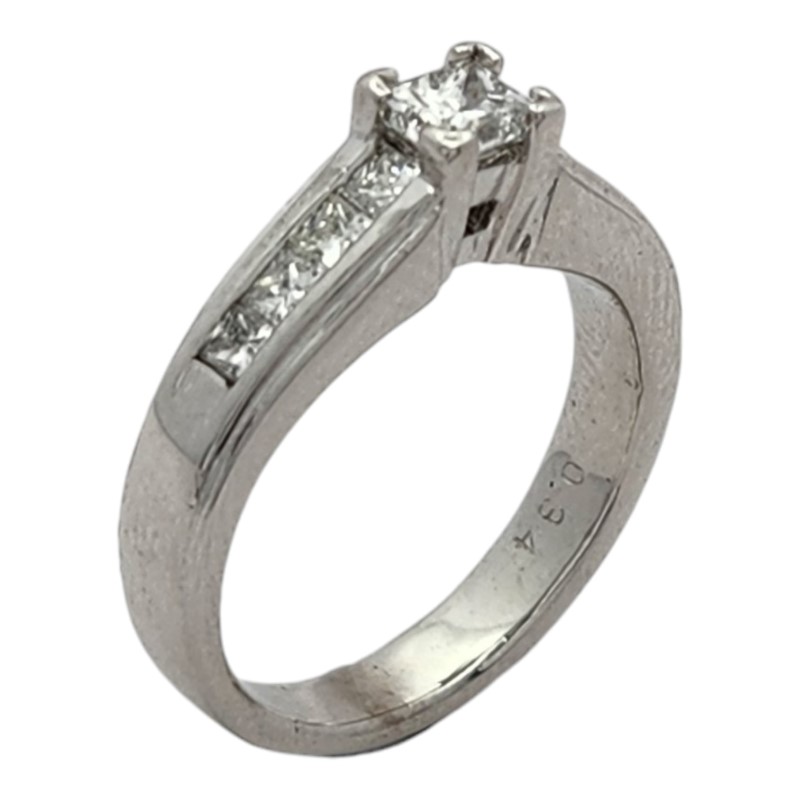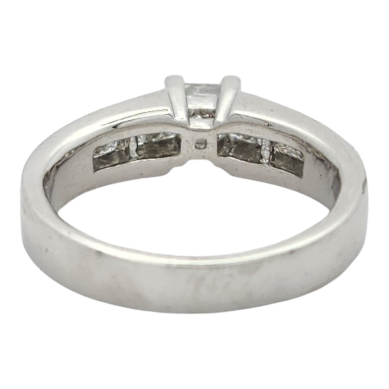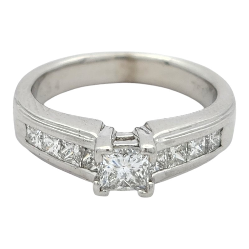 This 18ct white gold ladies' diamond ring features a total diamond weight of 0.63ct. Crafted in 18 karat white gold, this ring has a size I fit. The timeless design and sparkling diamonds make this an elegant choice for everyday wear or special occasions.