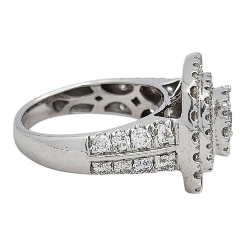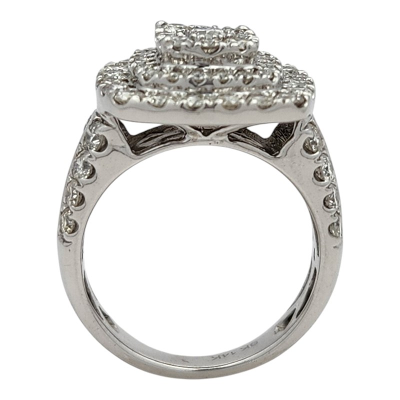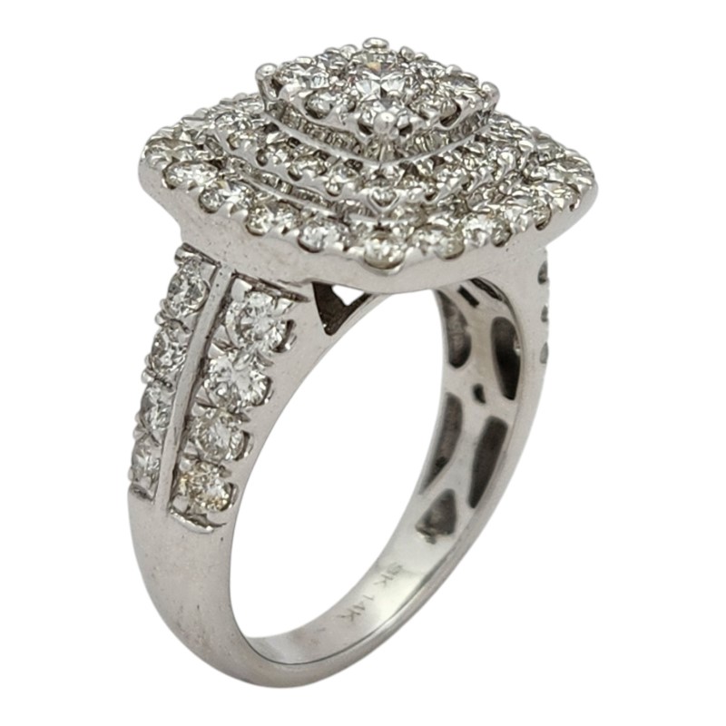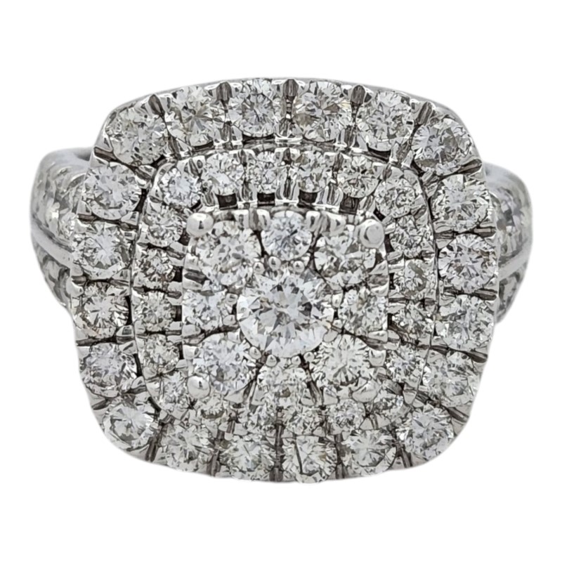 Elegant and sophisticated, this 14ct white gold cluster diamond ring is a stunning choice for the modern lady. Featuring a total diamond weight of 2, the cluster design beautifully showcases the brilliant sparkle of these stones. Crafted with a smooth band, the ring is a comfortable size L, making it a versatile accessory to elevate any look, from casual to formal. With its clean and classic aesthetic, this piece is the perfect addition to your jewellery collection.