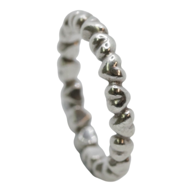 This exquisite 925 silver ring from the renowned Pandora brand features a patterned band design. The hallmarked 925 sterling silver construction ensures quality and durability. With a ring size of I½, this versatile accessory is designed for ladies. Weighing 2.56 grams, this ring boasts the iconic Pandora 's925 ale' engraving, adding a touch of authenticity. A classic and timeless piece that will complement any outfit. All sizes and measurements are approximate.