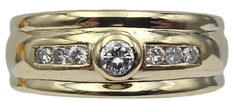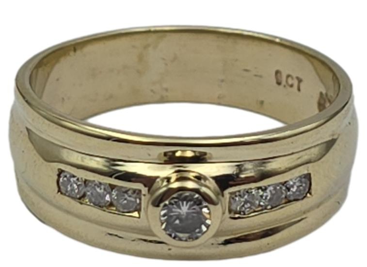 This elegant 9ct yellow gold diamond ring features a classic solitaire design with a smooth band. The bezel setting securely holds a single diamond, creating a timeless and sophisticated look. Weighing 3.85g, this ladies' ring has a size N band, perfect for everyday wear or special occasions. All sizes and measurements are approximate.