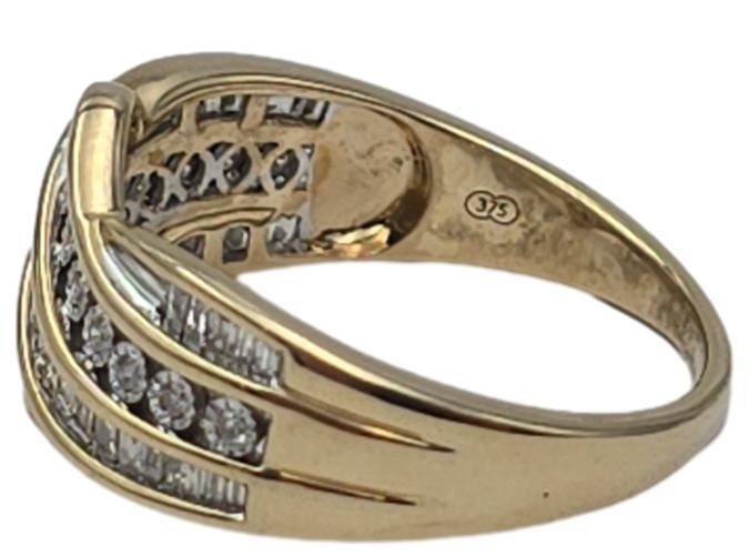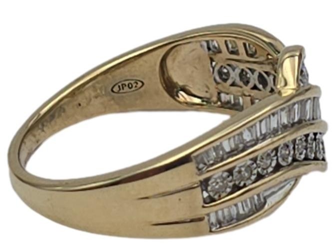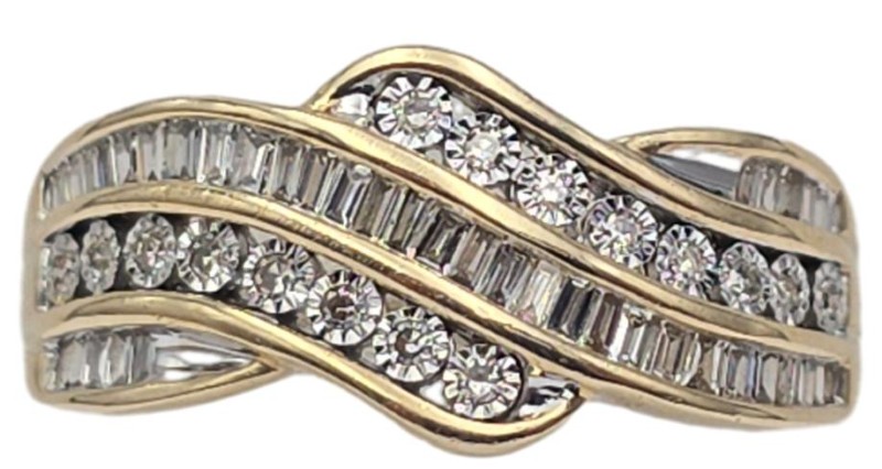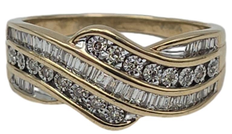 This elegant 9ct yellow gold ring features a captivating cluster of DIAMONDS set in a bezel setting. The smooth band has a hallmark of .375 and is sized at Q. Weighing 3.85 grams, this timeless ladies ring displays the engraved details '375 JP88'. All sizes and measurements are approximate.