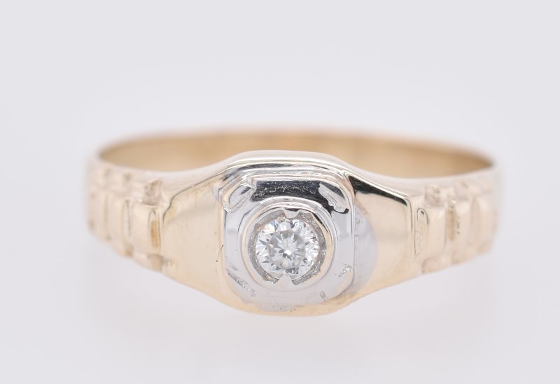 14ct Yellow & White Gold Clear Stone Ring