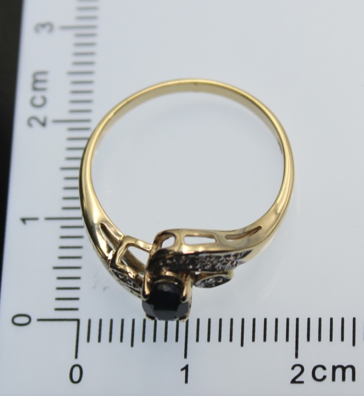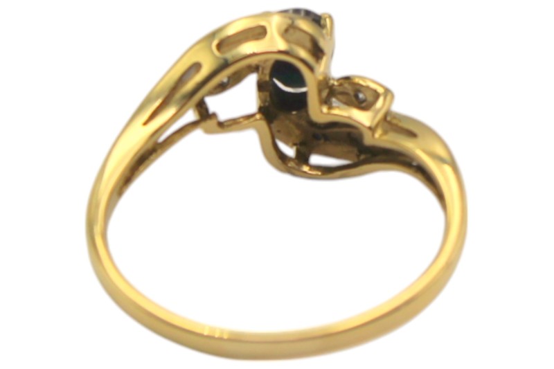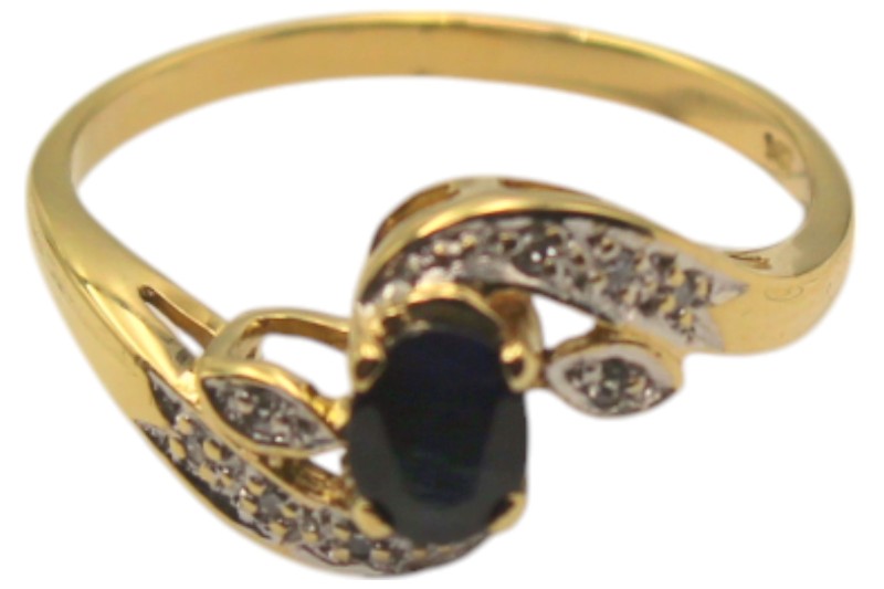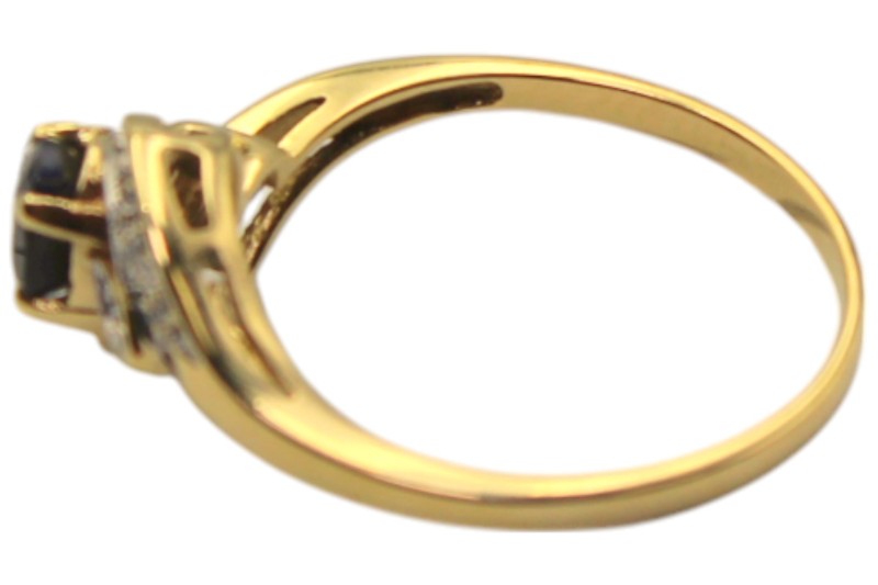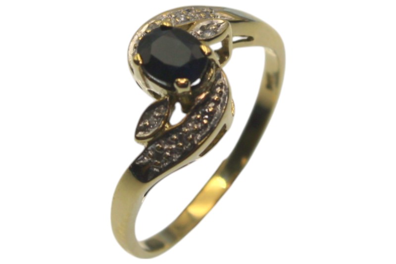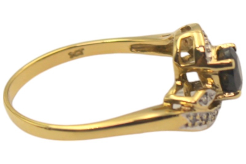 9ct Yellow Gold Deep Blue Stone and Diamond Ring