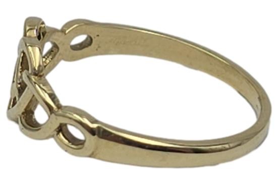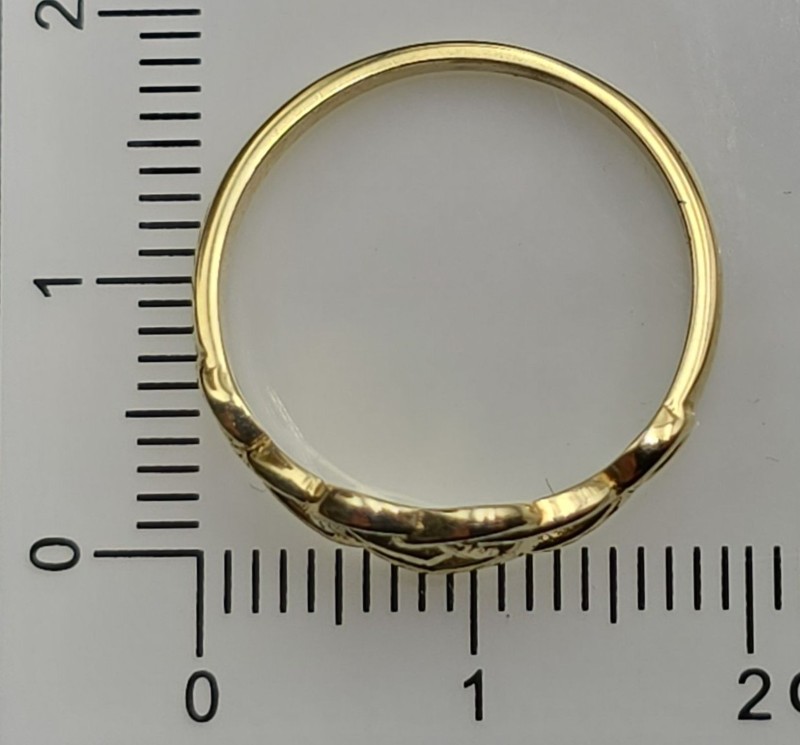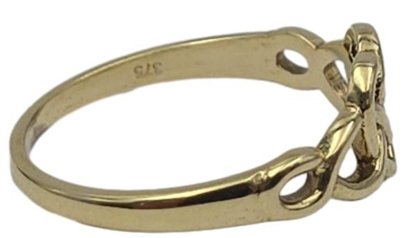 This 9 karat yellow gold ring features a plain, smooth band design. Weighing in at 1.57 grams, this ladies' ring has a size M fit. The engraved details on the band are marked as 375. All sizes and measurements are approximate.