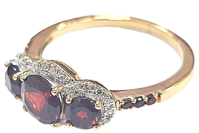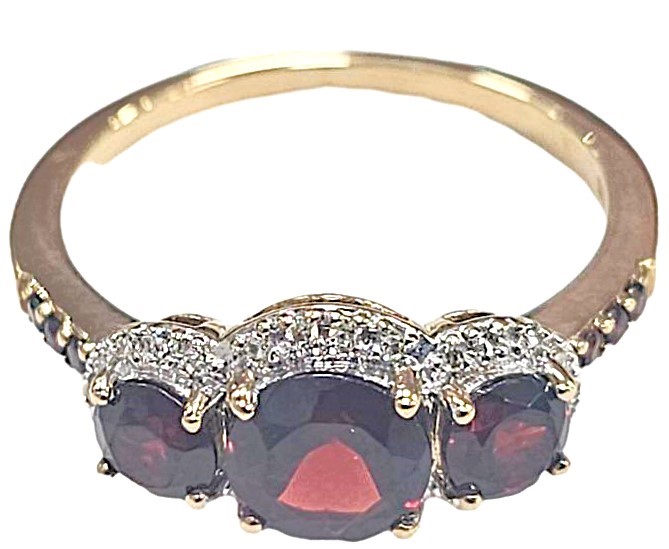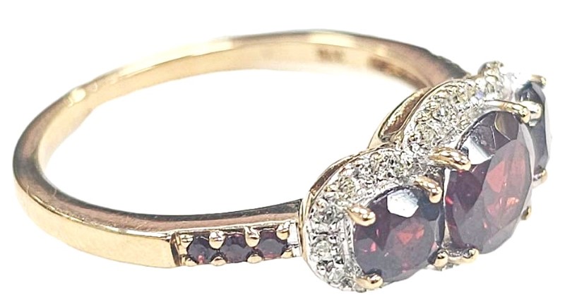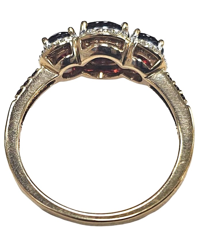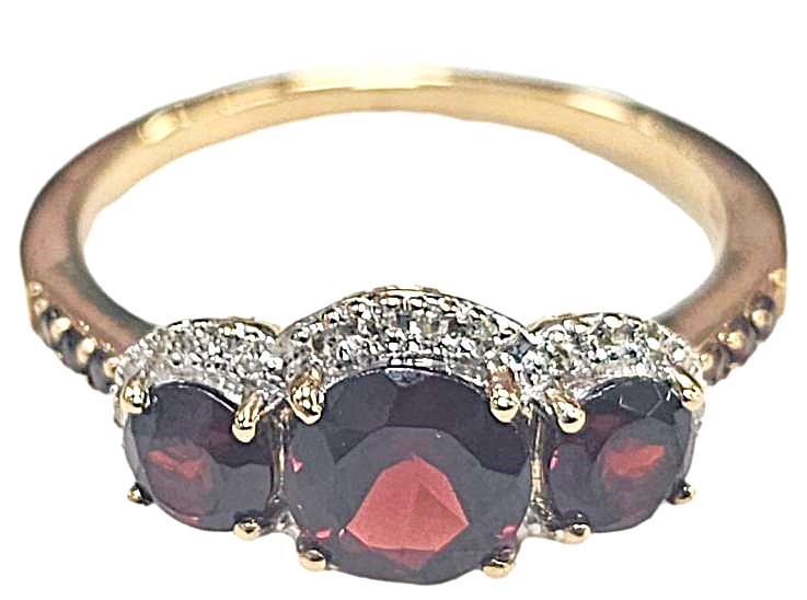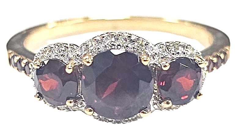9 Carat Yellow Gold Nine Garnet and Twenty Six Diamond Ring Valued at $1,420.00.