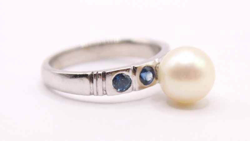 Make / Model: White Gold Ring With Akoya Pearl And 4 Sapphires