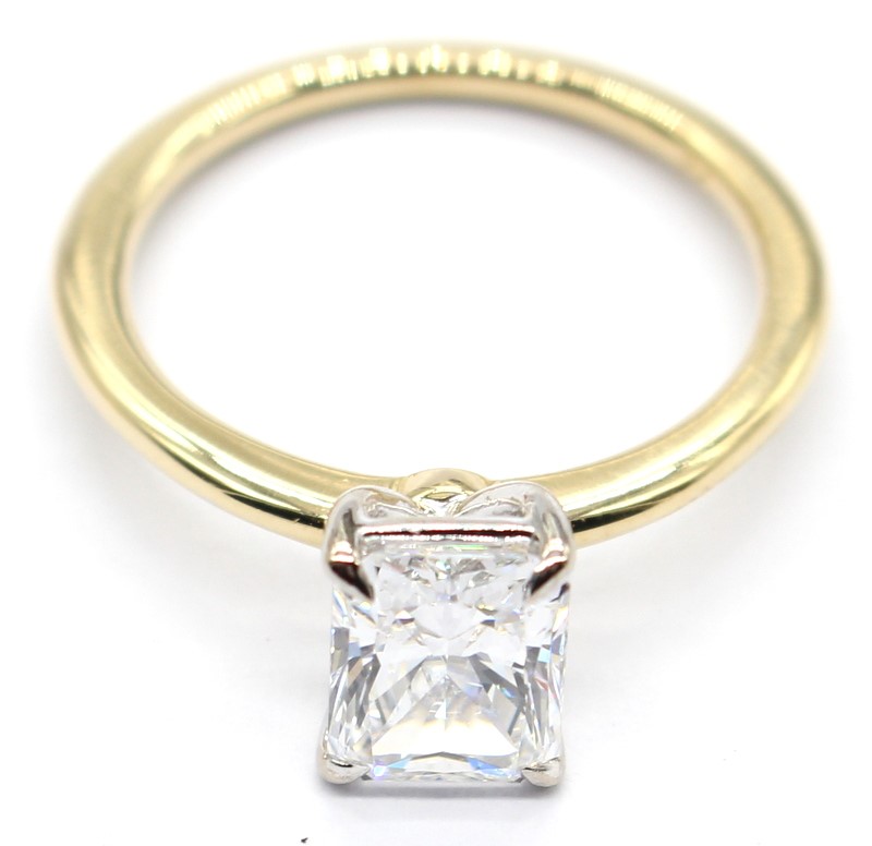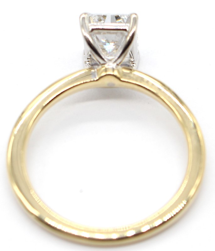 Crafted in 18K yellow gold, this solitaire diamond ring features a striking 1.31 carat hero stone. With a D color grade and SI1 clarity, the stone's quality is enhanced by a claw setting. The smooth, band-style ring is engraved with the code 750 7481346727 and weighs a substantial 2.76 grams. All sizes and measurements are approximate.