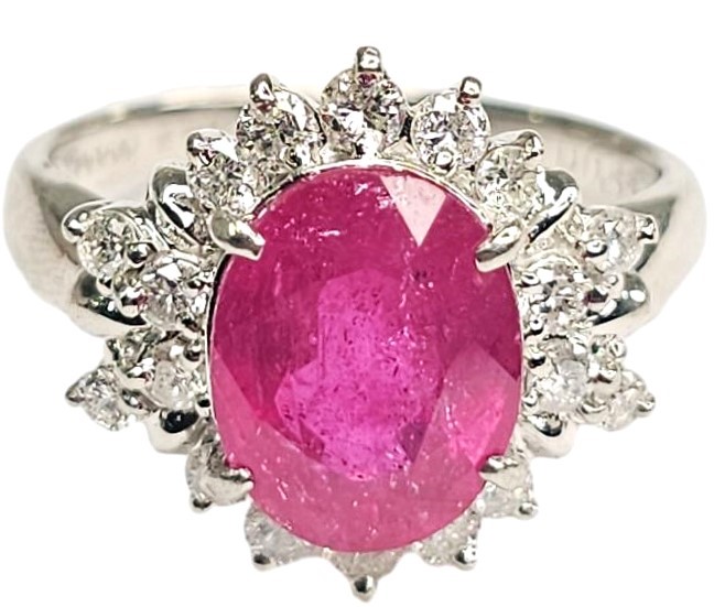 Platinum Ruby & .45ct Diamond Ring Size O 4XEQJF 017100247329