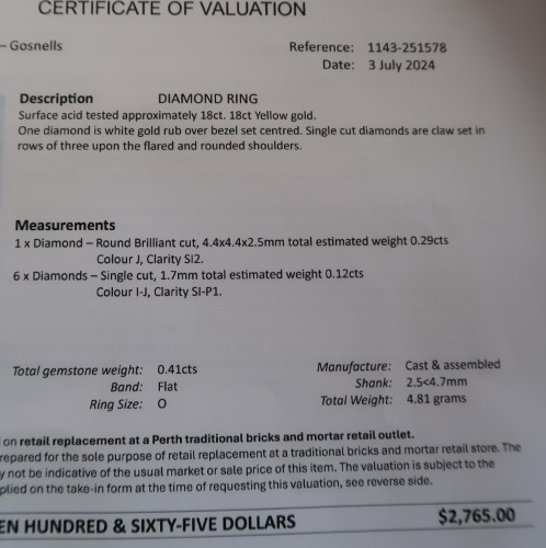 This ring is valued at a remarkable $2765.00. You can shop with absolute confidence, as all of our jewellery has been professionally inspected, cleaned, and tested, and this ring includes an independent valuation for your peace of mind. All offers are considered, and you are invited to ask about our jewellery club to find out about exclusive benefits.
