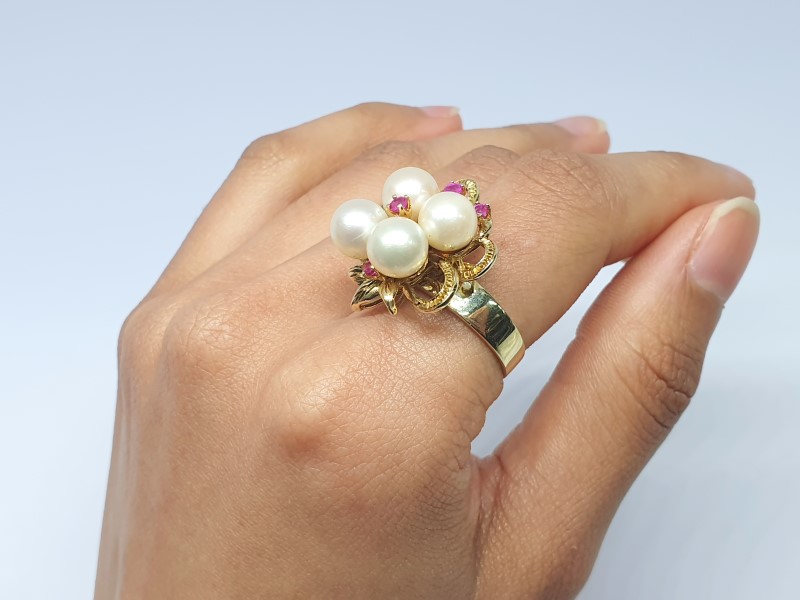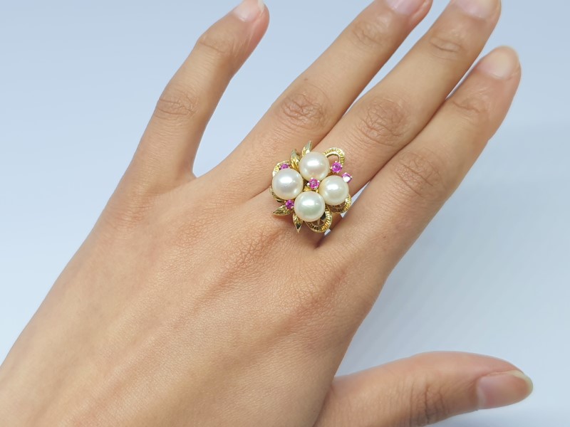 - 4 x cultured pearls, medium lustre, minimal blemishes, 7mm - 7.3mm
