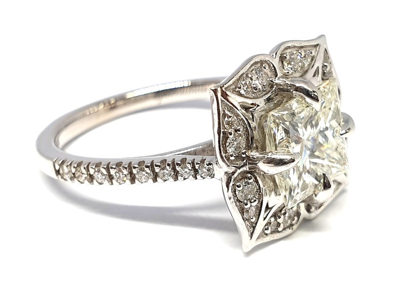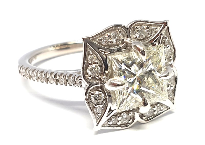 - One 6.78 x 6.85mm square princess cut, J-L colour, VS2 clarity, 2ct total estimated weight