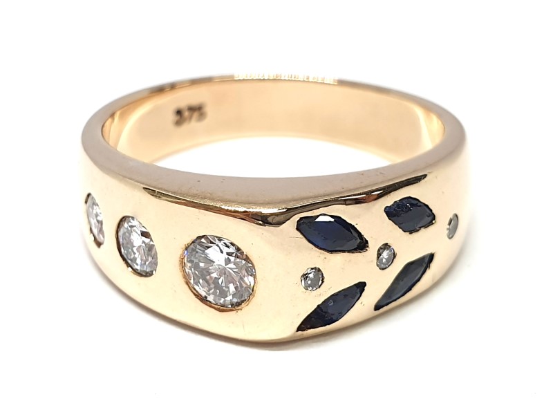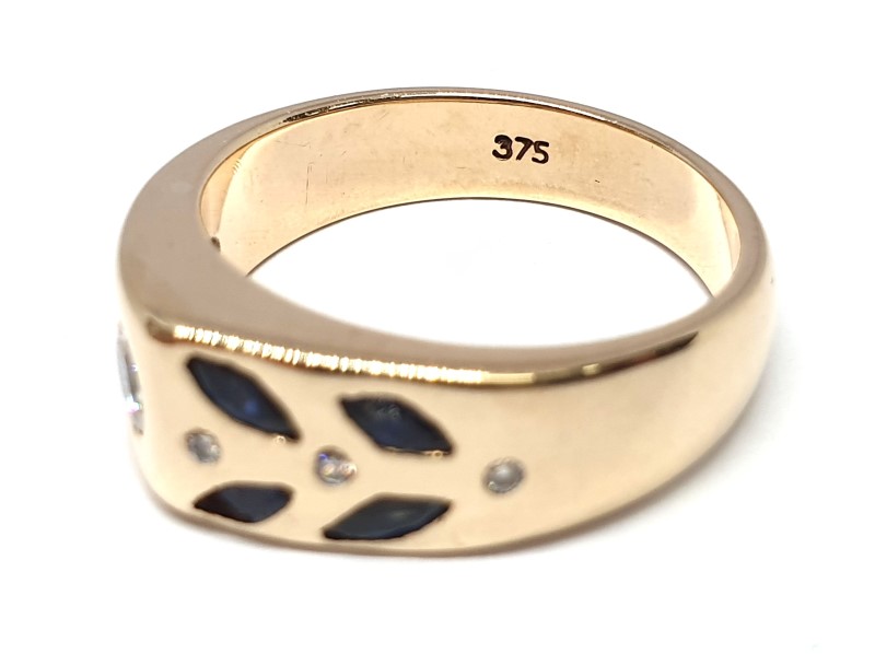 Sapphire 9ct Yellow Gold Ladies Sapphire Diamond Ring Size P Ring
