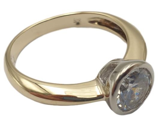 This exquisite 9ct yellow gold ring features a stunning 1.25ct clear solitaire stone set in a classic bezel setting. The smooth band has a hallmark of .375, indicating the quality of the precious metal. Weighing 3.2 grams, this timeless piece is a true statement of style. All sizes and measurements are approximate.