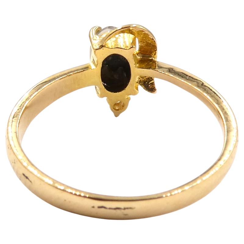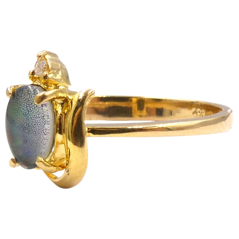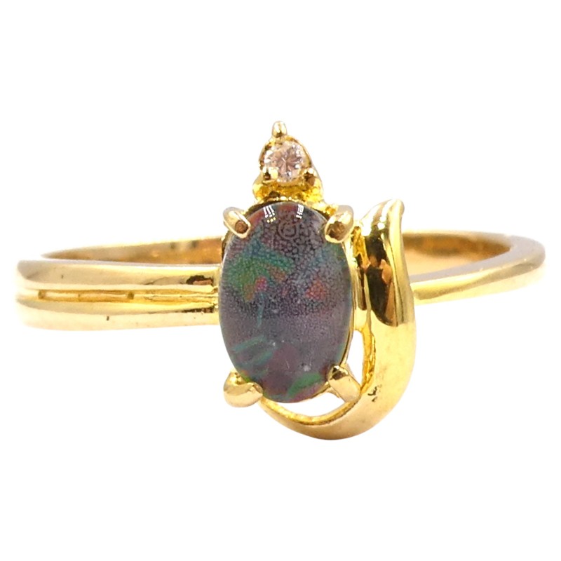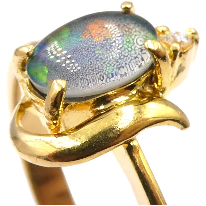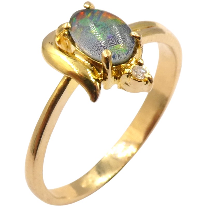 This stunning 20ct yellow gold ring features a single captivating opal stone, elegantly showcased in a claw setting. Crafted from 20 karat yellow gold and weighing a substantial 2.06 grams, the smooth band provides a comfortable and sophisticated wear. With a ring size of L, this piece is a beautiful accessory for the modern woman. All sizes and measurements are approximate.