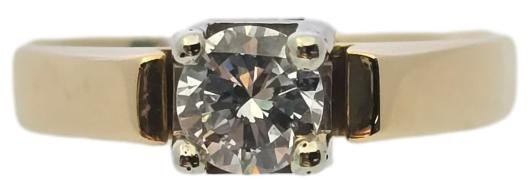 This exquisite 18ct yellow gold ring from renowned jeweller Paul Bram features a claw-set diamond centre stone weighing 0.45ct. The total diamond weight of 0.63ct adds a stunning sparkle, while the hallmarked .750 gold ensures quality and durability. Sized at S, this sophisticated diamond ring is a timeless, elegant piece to be cherished. All sizes and measurements are approximate.