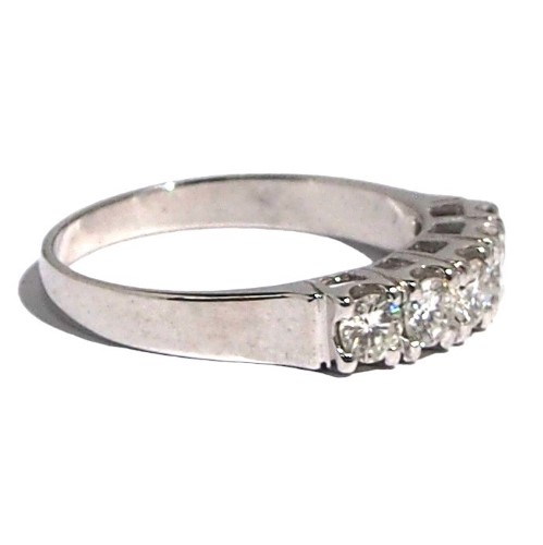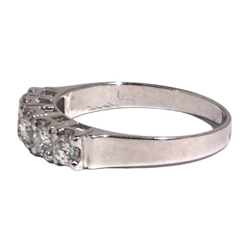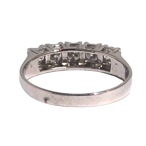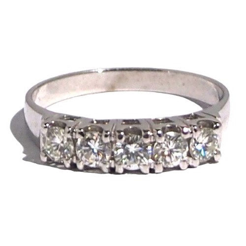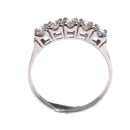 18ct white gold ring housing 5 round brilliant cut diamonds raised in claw setting along with extended shoulders and smooth band
