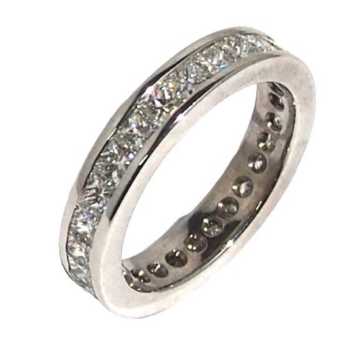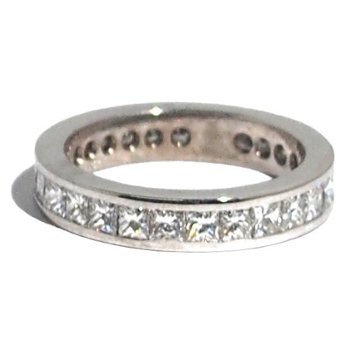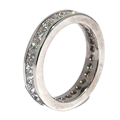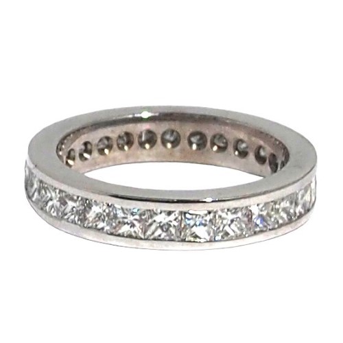 18ct white gold eternity style ring housing 27 princess cut diamonds running around the entire ring