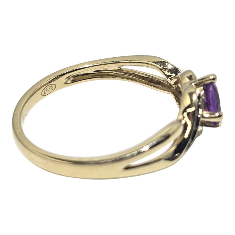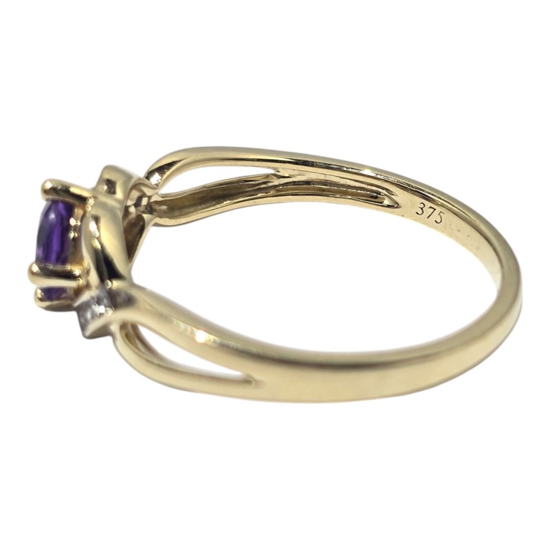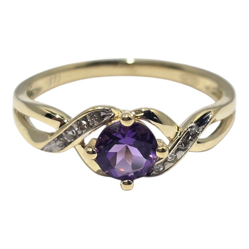 This elegant 9ct yellow gold ring features a smooth, sleek band and a central setting showcasing a sparkling stone. Crafted from durable yellow gold, the ring has a size P band and weighs a substantial 1.84 grams. The classic design makes this piece a versatile accessory suitable for women of all ages. All sizes and measurements are approximate.