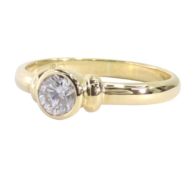 This exquisite 18ct Yellow Gold Ladies Diamond Ring features a dazzling Diamond solitaire set in a claw setting. The round brilliant-cut Diamond, weighing 0.5ct, is graded H colour and I2 clarity. The smooth ring band has a size of Q½. Crafted in 18ct Yellow Gold, this timeless and sophisticated piece would make a wonderful addition to any jewellery collection. As the official birthstone for April, the Diamond symbolises purity, clarity, and enduring love.