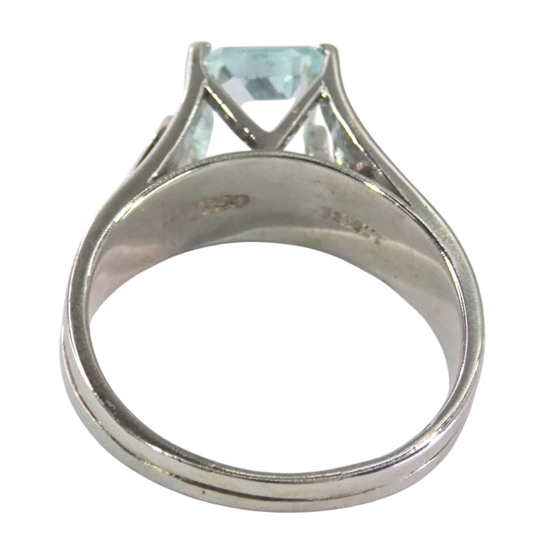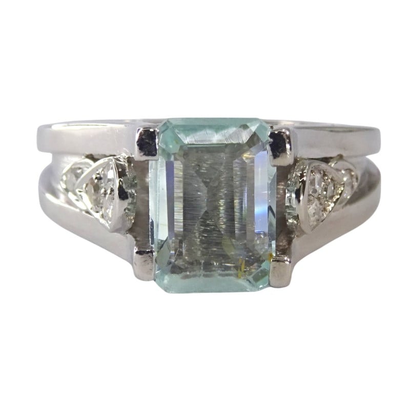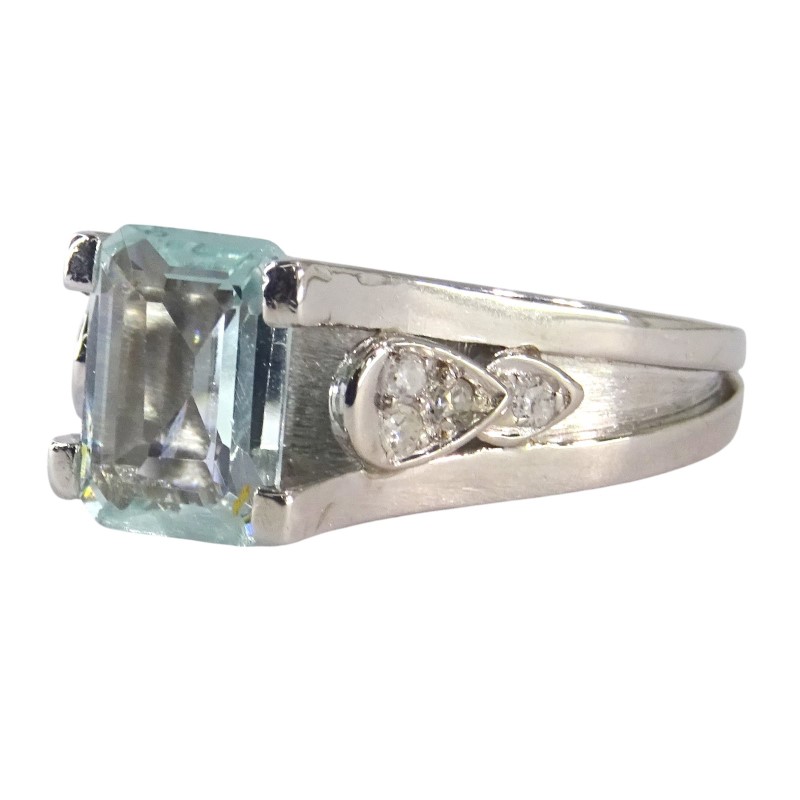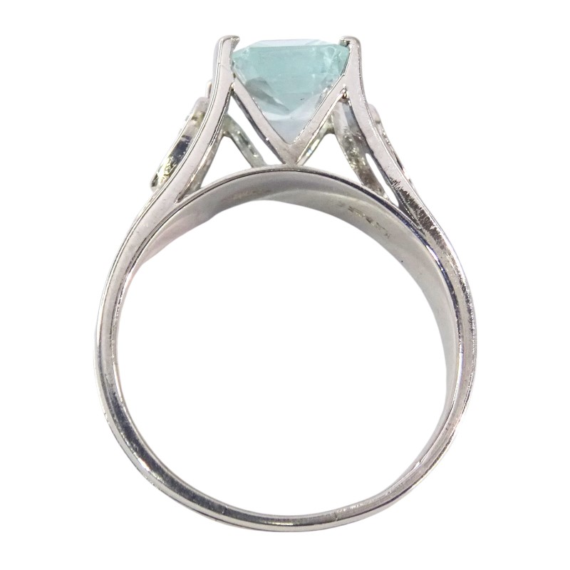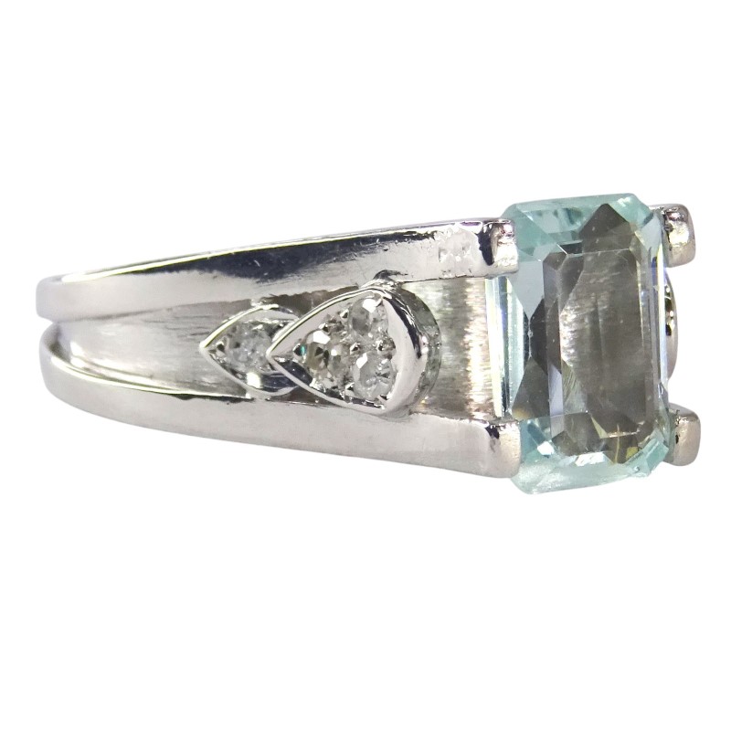 Crafted in 18K white gold, this elegant ladies' ring features a stunning 1.41ct emerald-cut aquamarine as the hero stone. Accented by 0.14ct of sparkling diamonds set in a claw setting, the smooth band and solitaire design create a timeless, sophisticated look. Hallmarked as 18K (.750) gold, this ring is a beautiful example of natural aquamarine and diamond jewellery.