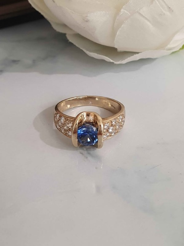 Make / Model: 9K Gold Sapphire And Clear Stone Ring