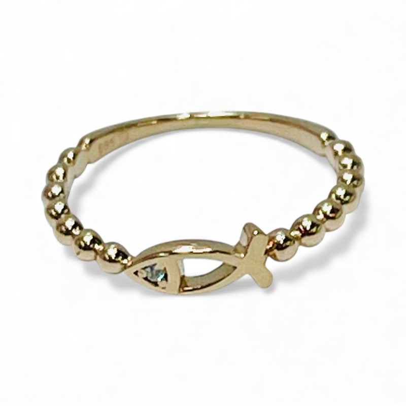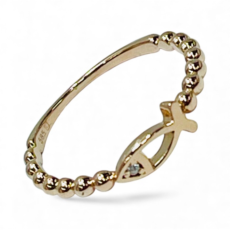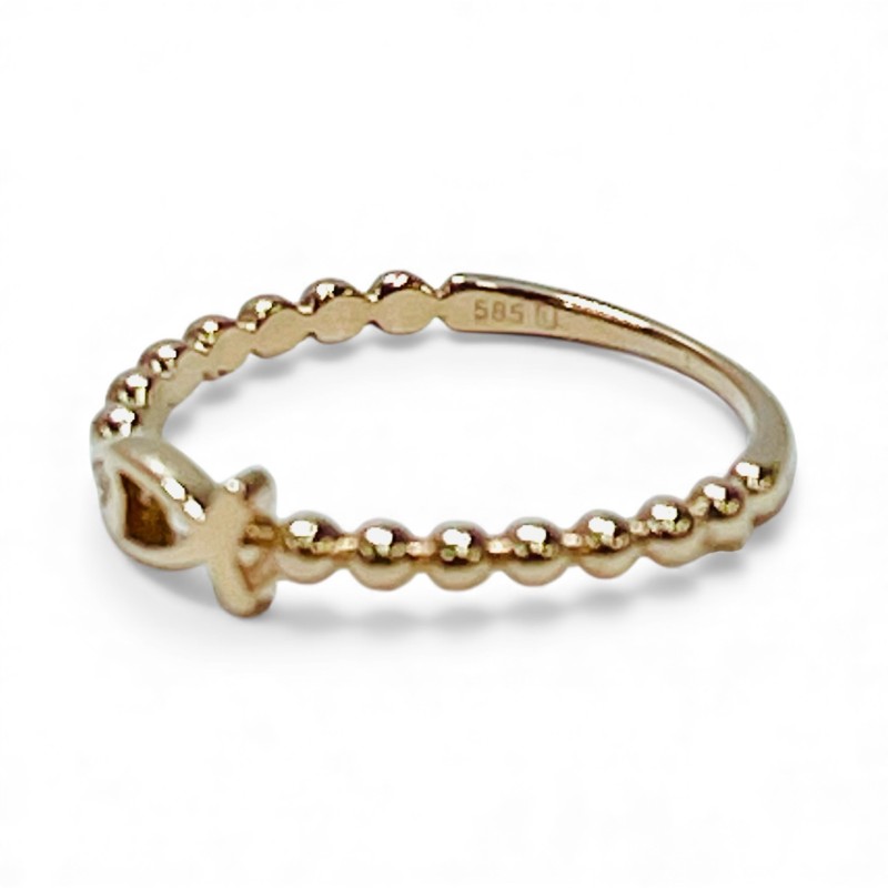 This elegant 14ct rose gold ring features a single clear stone, adding a touch of subtle sparkle. The ring is hallmarked .585, indicating its 14ct purity. With a size K½ fit, this piece is crafted with a straight stone setting for a classic look. Weighing 1.33 grams, this ring is a timeless accessory that can be worn for any occasion.
