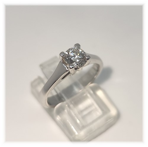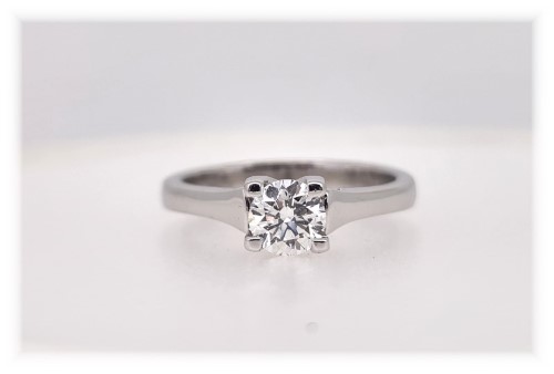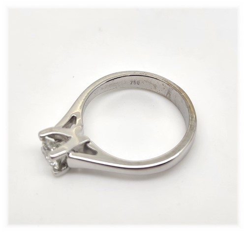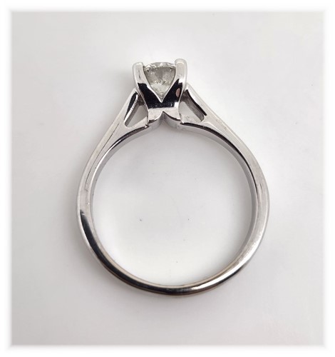 1 beautiful round brilliant cut diamond, set in 18k white gold. Approximately 0.50ct diamond, P1 clarity and Colour I.