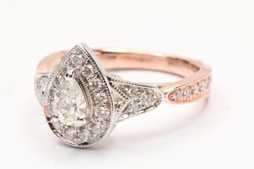 Make / Model: *Manager's Special* - Val $5,350 - 14ct Rose/Wht Gold Diamond Pear Cluster Ring W/ Sapphires