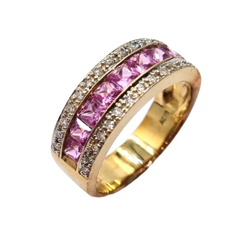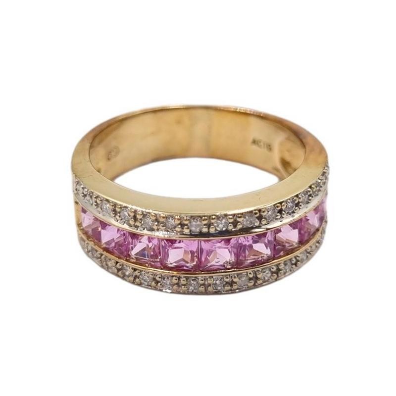 9ct Yellow Gold Pink Sapphire Diamond Ring