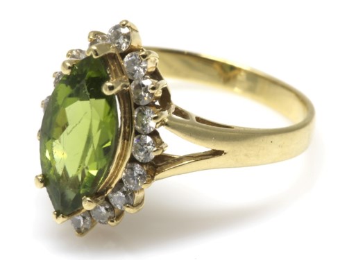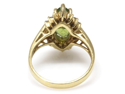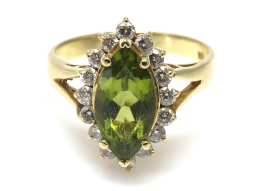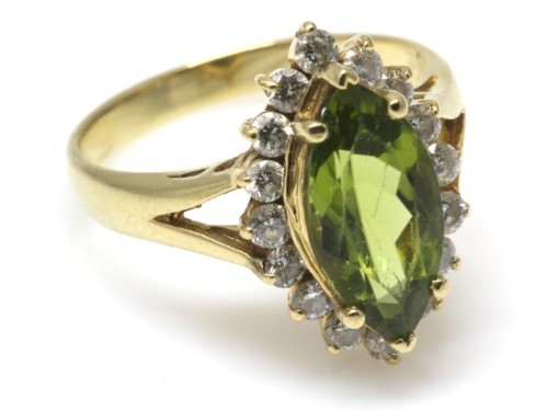 18CT YELLOW GOLD AND DIAMOND MARQUISE CUT PERIDOT STONE - 2.50ct