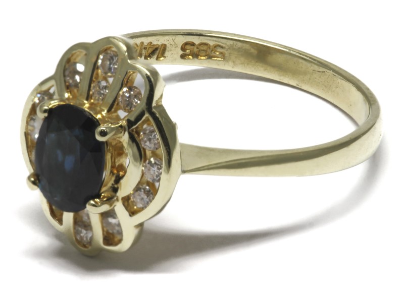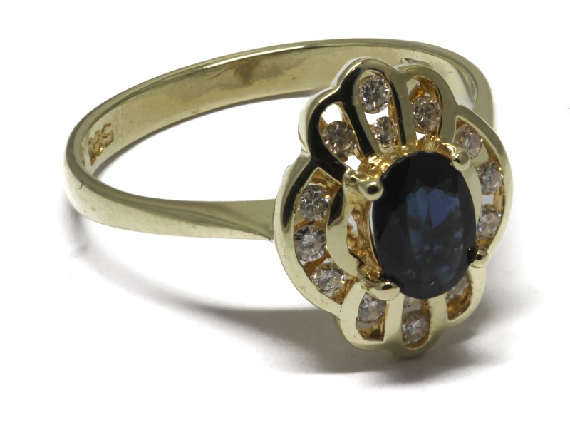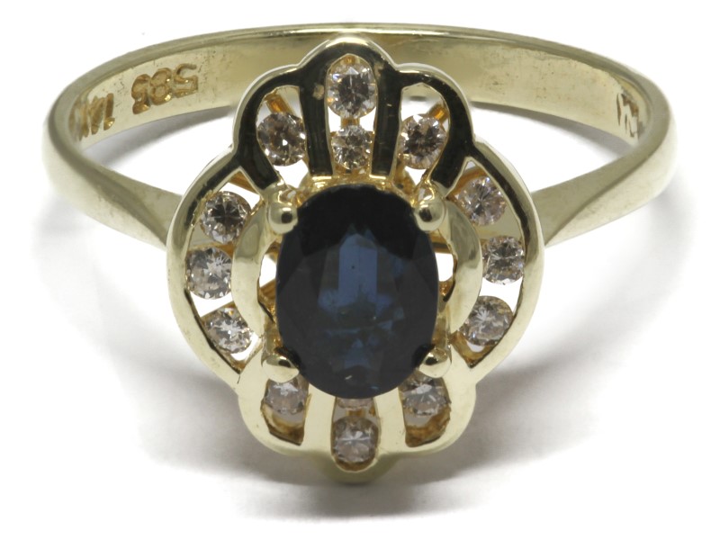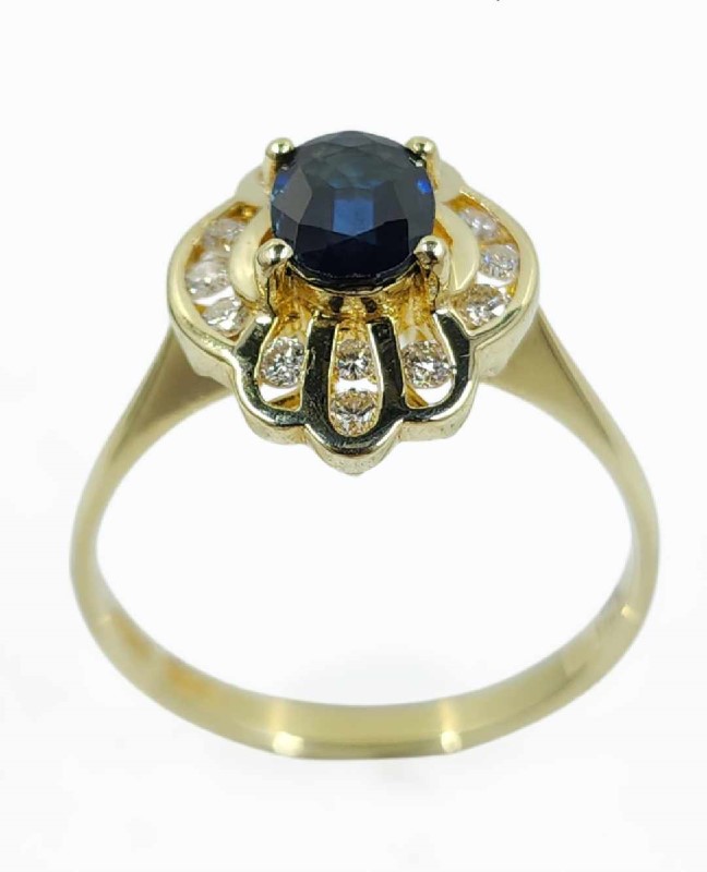 14CT YELLOW GOLD RING WITH NATURAL SAPPHIRE AND DIAMONDS