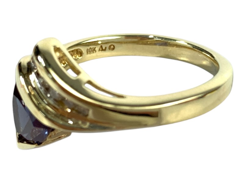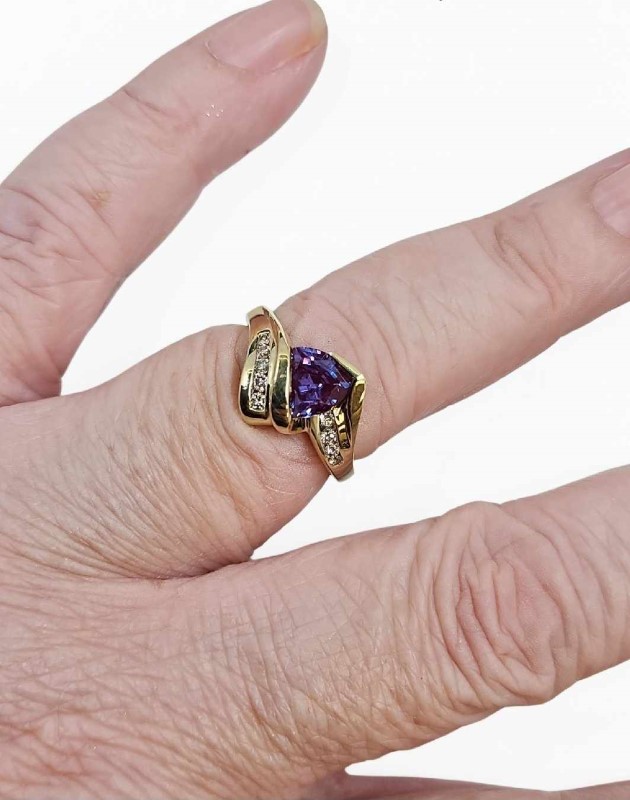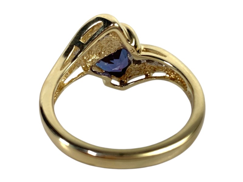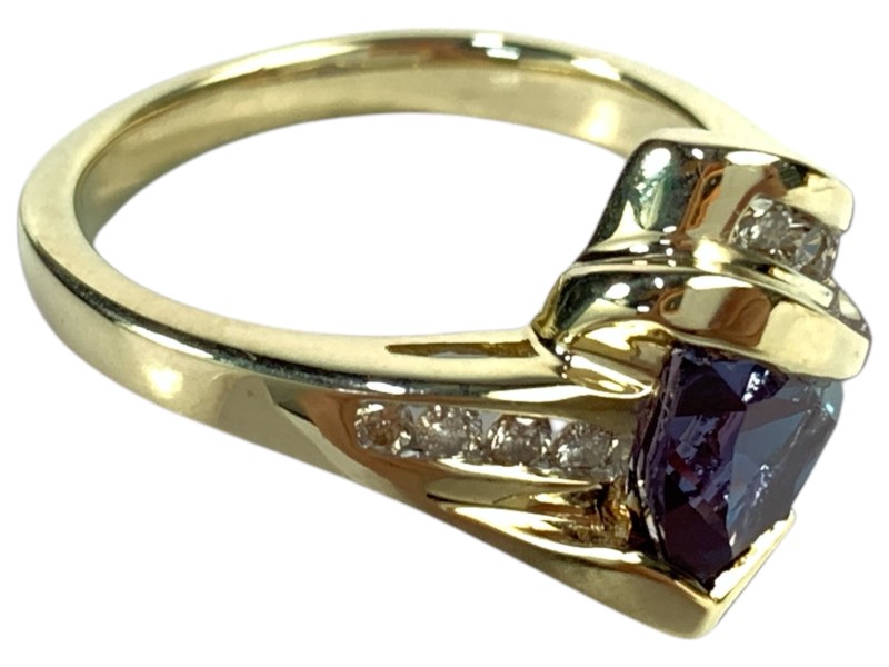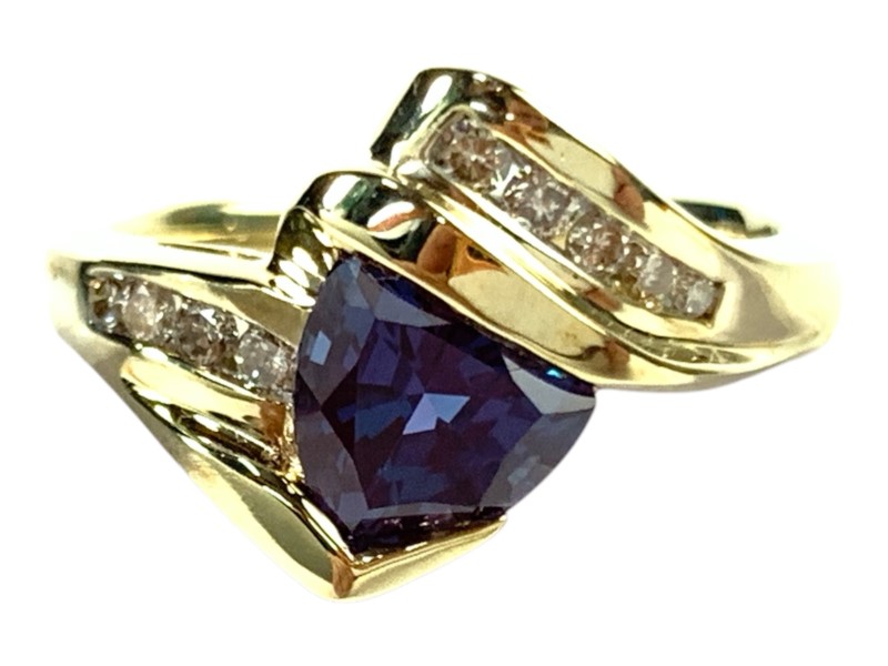 10CT YELLOW GOLD AND DIAMOND RING WITH LAB GROWN COLOUR CHANGING CORUNDUM