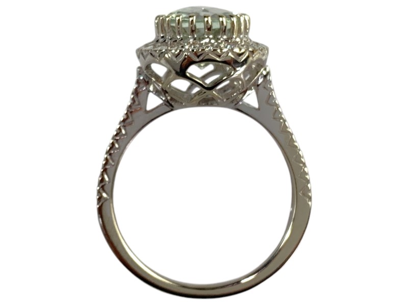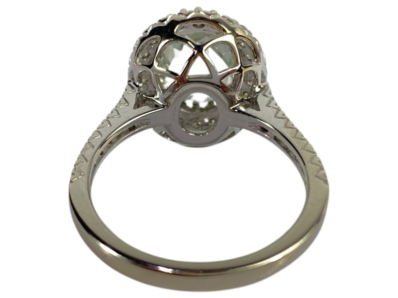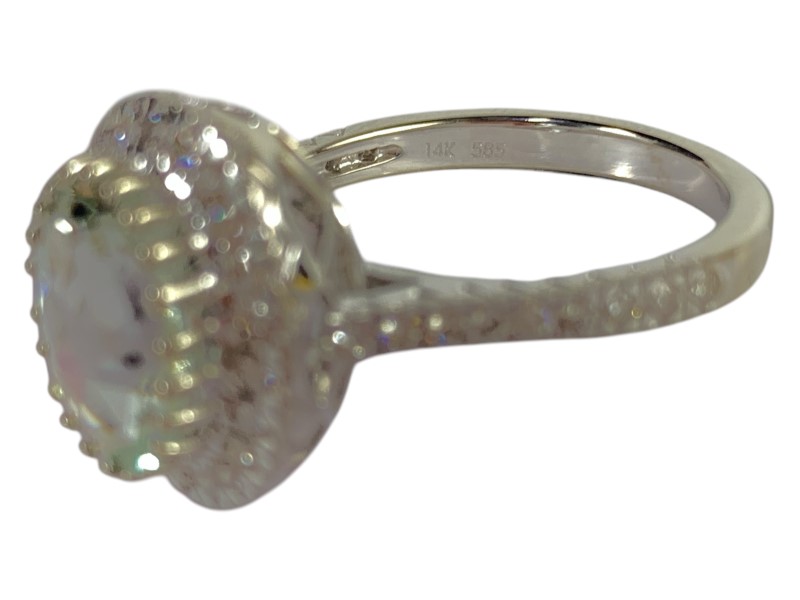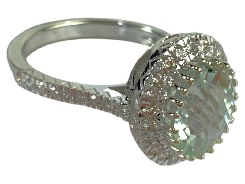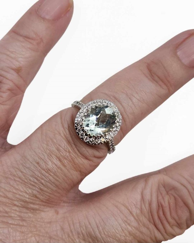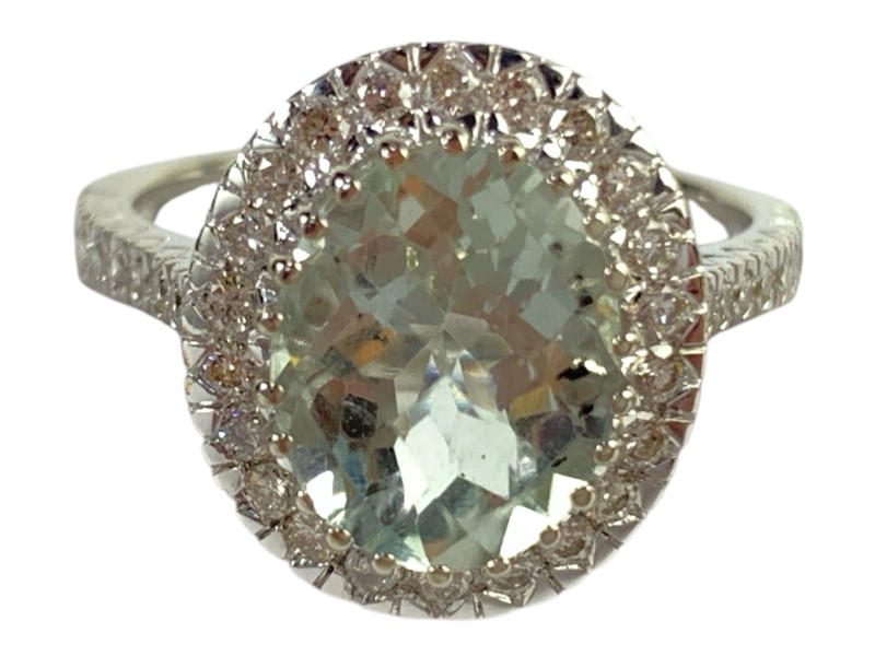 14CT WHITE GOLD AND DIAMOND HALO RING WITH OVAL GREEN/BLUE AQUAMARINE