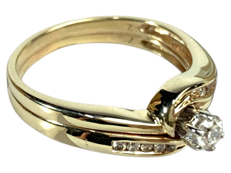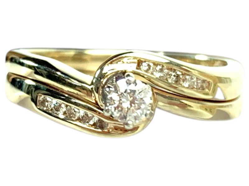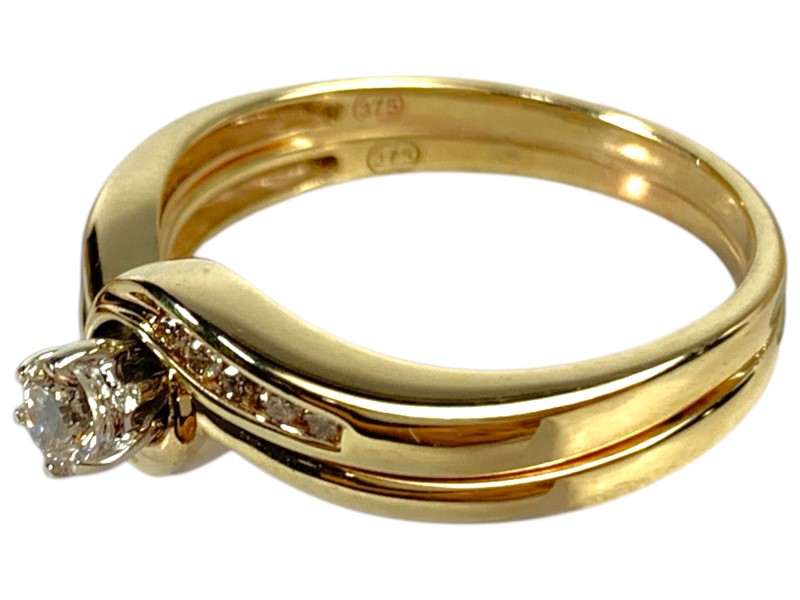 Description: 9CT YELLOW GOLD AND DIAMOND SOLDERED BRIDAL SET